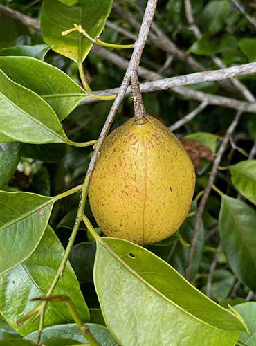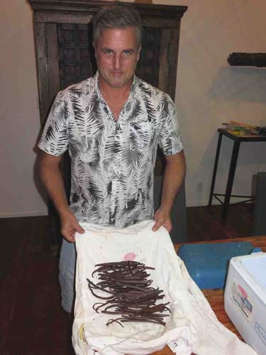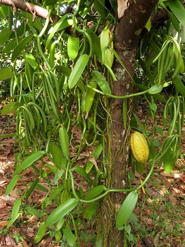 As education is a key aim of this column as well, we’ll use a sliver of Dan and Berndt’s plant palette (they grow more than 1000 taxa) to spice up a brief and easy lesson in botanical nomenclature. Many edible and medicinal plants sport refreshingly recognizable Latin binomials. Isn’t it satisfying to suss out so easily Cinnamomum verum, Vanilla planifolia and Piper nigrum as “true” cinnamon, “flat-leaf” vanilla and black pepper? A bit more mysterious are Myristica fragrans (nutmeg) and the somewhat less scrutable Syzygium aromaticum (cloves), although the species names of both advertise that something’s smelling mighty sweet.
