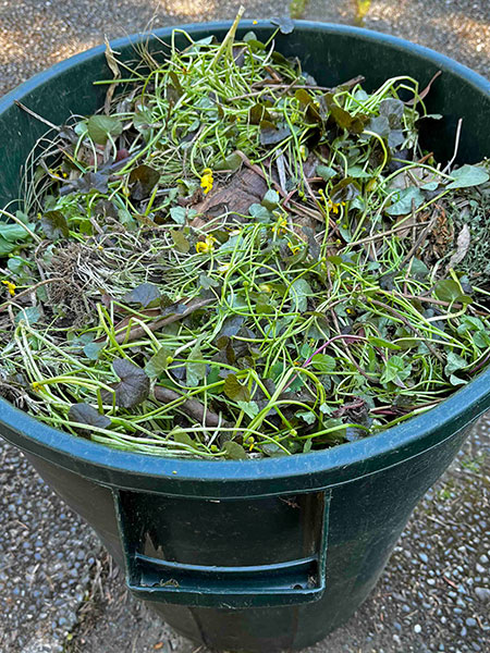 Here’s my Hall of Shame for Spring 2024: Ficaria verna*2, Hyacinthoides hispanica, Oxalis oregana, Aegopodium podagraria3, Allium triquetrum, Arum italicum*, Euphorbia amygdaloides, Geranium nodosum, Houttuynia cordata, Lamium galeobdolon*, Persicaria (several species), and Vinca minor. As cited in the footnotes, a few are designated noxious weeds. Let’s consider in more detail the first trio of the list, which I dub my Unholy Trinity.