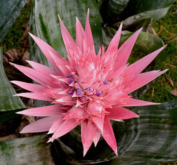 As we sang the praises of a few of these beauties in last season’s Horticulturally Yours segments, we won’t dwell on those today. For a refresher click on the respective hyperlinks to review the bright bracts of the bromeliad Aechmea fasciata, the fuzzy cerise buds of the purple princess flower, Tibouchina urvilleana, and the towering titan Dahlia imperialis, blooming this year more boldly than ever.