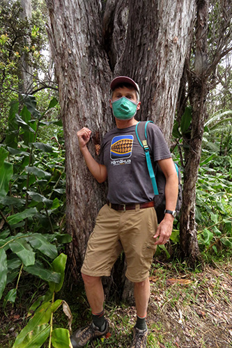 In light of these dichotomies and polarities, it’s somehow fitting (if no less disturbing) that M. polymorpha is currently facing a distinctly 21st century challenge. About 10 years ago groves of ōhi’a, some centuries old, began dying in alarming numbers in the Puna District south of Hilo. In 2014 the culprit was identified as a pathogenic fungus in the genus Ceratocystis.4 The fatal disease, dubbed Rapid ʻŌhi’a Death (ROD), has since spread all over the Big Island as well as to Kaua’i, and isolated examples have popped up on O’ahu and Maui.