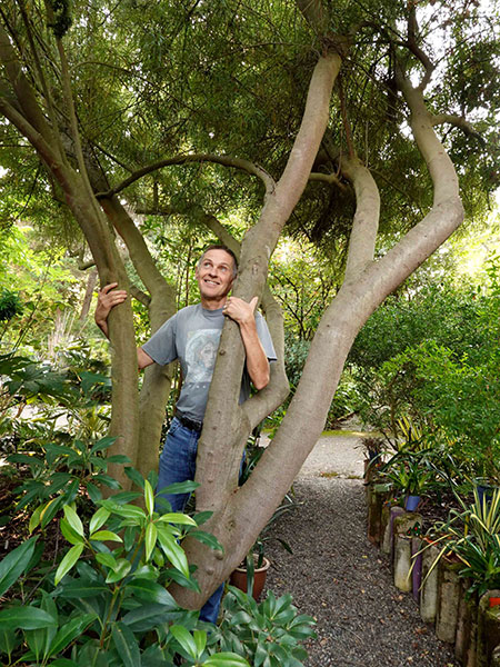 Of the 100 or so trees I’ve plopped into the garden over the last third of a century, one that against all odds has wormed its way endearingly into my heart is Lomatia myricoides, a native of southeastern Australia and the largest member of the protea family we can grow in the maritime Pacific Northwest. My sprawling specimen, profiled last fall in the HY segment “If Trees Could Talk,” airily embraces neighbors with its 30-foot wingspan. Already budding up, next month it will be covered in fragrant, ivory-toned blossoms that captivate bees and hummingbirds alike. Two other species in the genus can be grown here, the easier of which, L. tinctoria, also an Aussie, is a compact shrub with attractive, tightly packed, minutely dissected foliage 2. The third, L. ferruginea, a native of Patagonian Chile and Argentina that boasts exquisitely bipinnate, ferny foliage and alluring pinkish orange flowers, is occasionally offered by specialty growers in our region, although I’ve failed to keep one alive in my garden.