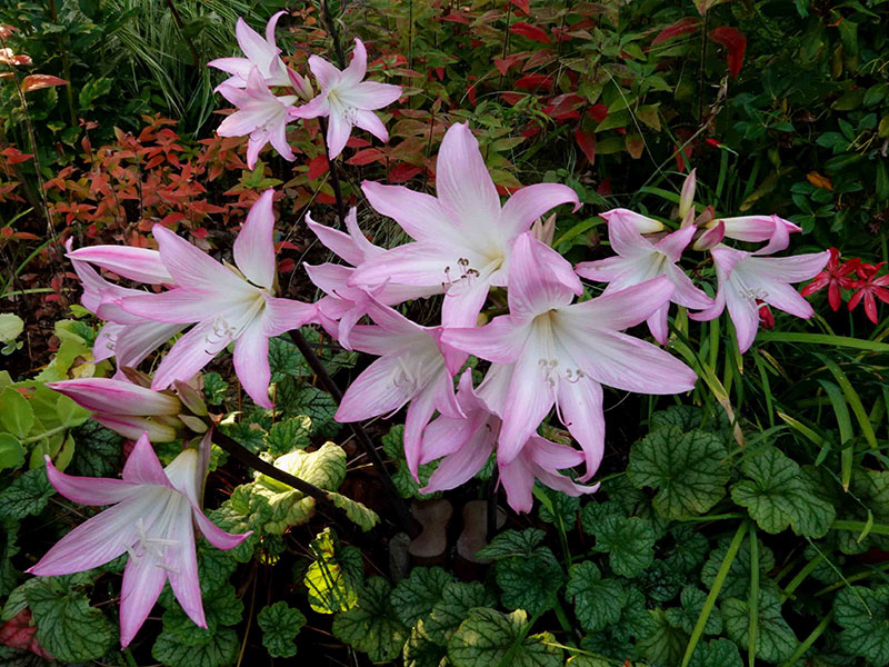 On this slightly ominous note we commence the third season of Horticulturally Yours. In the inaugural segment two years ago, I spotlighted Mirabilis jalapa (commonly called four-o’clocks, or marvel-of-Peru), one of my mother Dorothy’s favorites. In her final garden, a stone-studded patch of anemic soil in the Arkansas Ozarks, Mama also grew Lycoris squamigera, which she called surprise lilies, a common name also shared with A. belladonna, which it physically resembles and to which it is closely related. (In fact, a now invalid synonym of L. squamigera is Amaryllis hallii.) A more widely employed, not to mention racier common name for both is naked-lady-lily, a moniker also used for many Colchicum cultivars (see below), as all three share the trait of flowering stems emerging at summer’s end unadorned by foliage, which doesn’t emerge until flowering has ended, in late autumn (amaryllis) or spring (colchicum). All are known for their longevity and thrive in sunny spots with dry, unirrigated soil.
