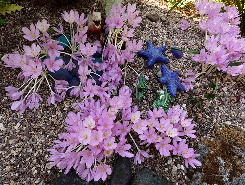 At autumn’s onset, I find my amaryllis and colchicum acting livelier than ever, spirited and sprightly in the absence of late September rains that frequently bedevil their preference for sun-drenched matinees. A slew of other flamboyant divas —both xeriscape succulents and cacti as well as tropical foliage drama queens— reveled in the summer heat as well, putting on their best show in years. Aloe and Agave, Aeonium and Crassula, Echinopsis and Parodia, Alocasia and Colocasia: All seemed to benefit from this year’s persistent and prolonged stretch of toasty, light-drenched days. We must acknowledge that such lush growth was enabled by an abundance of another essential element: water. Although precious little fell from the sky this summer, the superabundance of rain —and mountain snow to fill our reservoirs in the Cascades—through mid-June left us in solid shape to engage in (relatively) guilt-free irrigation, unlike our hard-up neighbors in parched California and points east.