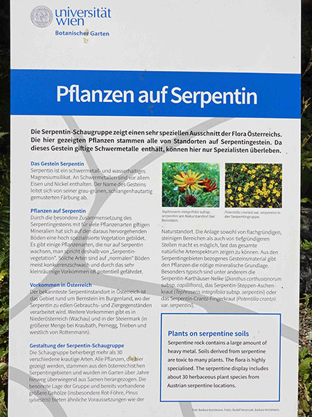 The Botanical Garden of the University of Vienna, founded in 1754 as the Latin-named Hortus Botanicus Vindobonensis, is laid out in three contiguous rectangular plots that total 20 acres, housing more than 11,500 species of plants in 54 well-organized zones. About half these areas are allotted fairly equally to conifers, broad-leaved trees and flora of Austria (with an unrelated, unexpectedly large, 140-year-old bamboo grove in one corner). Most of the remaining space is dedicated to an 18-stage Systematic Grouping that arranges flowering plant families by evolutionary hierarchy, beginning with basal angiosperms (such as the family Amborellaceae that emerged 140 million years ago) through to the enormous asterid clade that encompasses almost 1/3 of all flowering plant species, including much of what we grow in our gardens and stuff in our mouths. Now that’s food for thought!