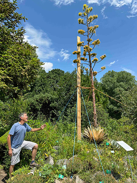 The northernmost section of the garden is devoted to an astonishingly ample collection of cacti and other xeriscape plants painstakingly bedded out in summer and stored in nearby glasshouses in winter. Adjacent to the southern end of the botanical garden (but administered separately from it) is the Alpengarten of the Austrian Federal Gardens project, Europe’s oldest alpine garden. Of particular interest during my visit last July were a towering Agave parryi in glorious full bloom; clouds of creamy and dreamy inflorescences of Seseli gummiferum (sometimes called moon carrot) practically covered in frantic swarms of delirious pollinators; and hundreds of labeled, regimented trial seedlings of Sempervivum cultivars.